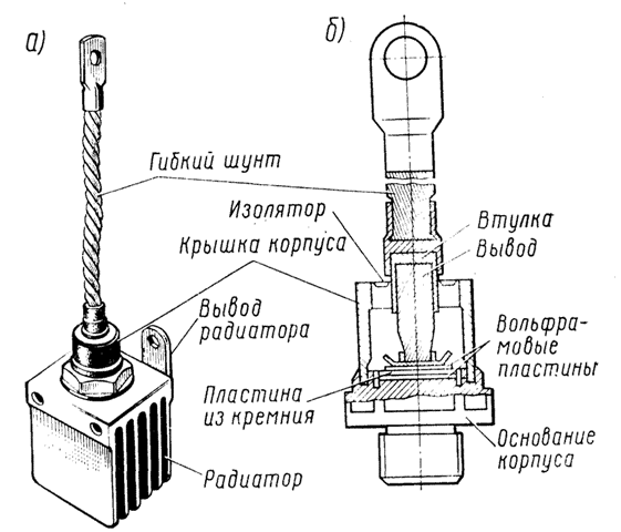 Диод, обрудованный радиатором воздушного охлаэждения: а) общий вид; б